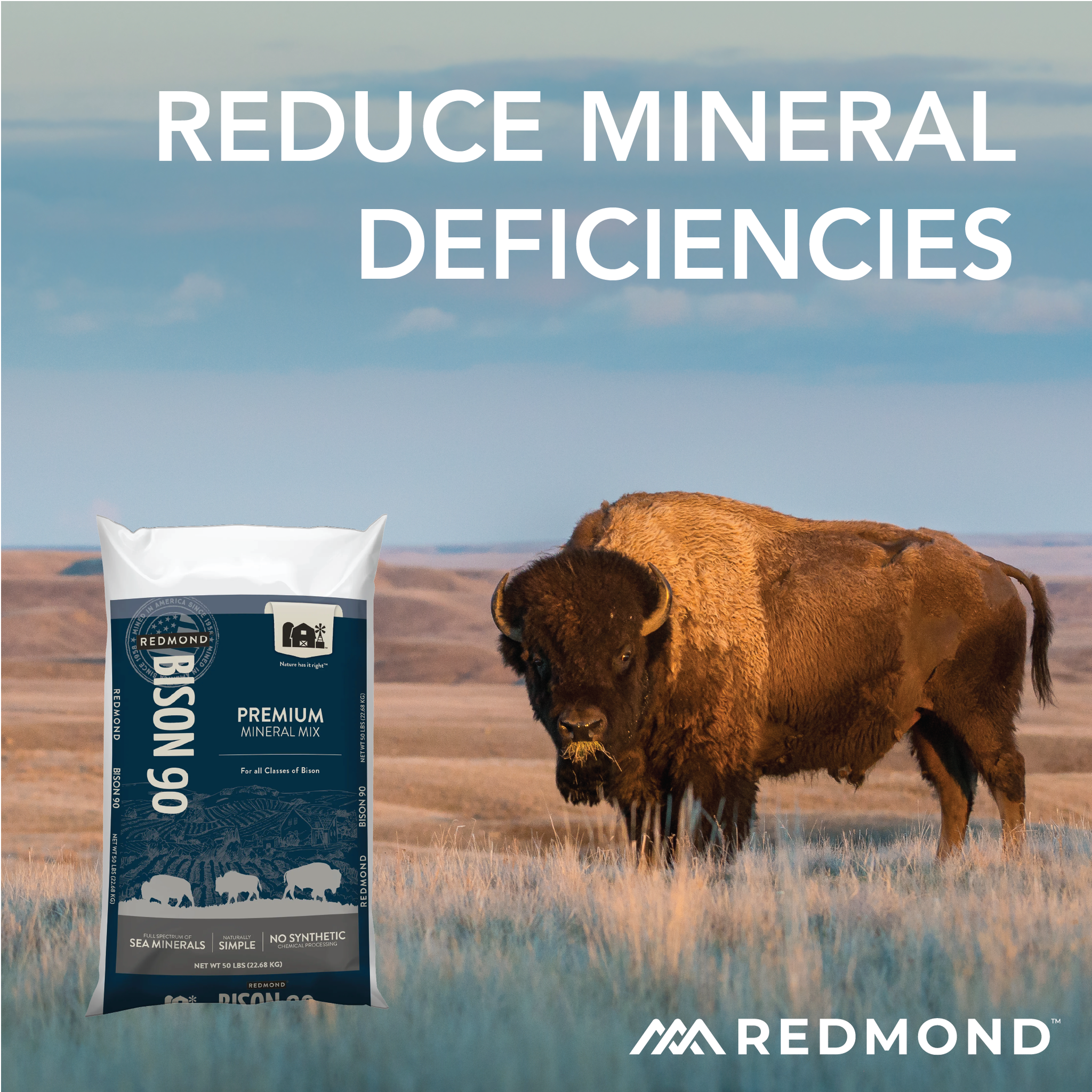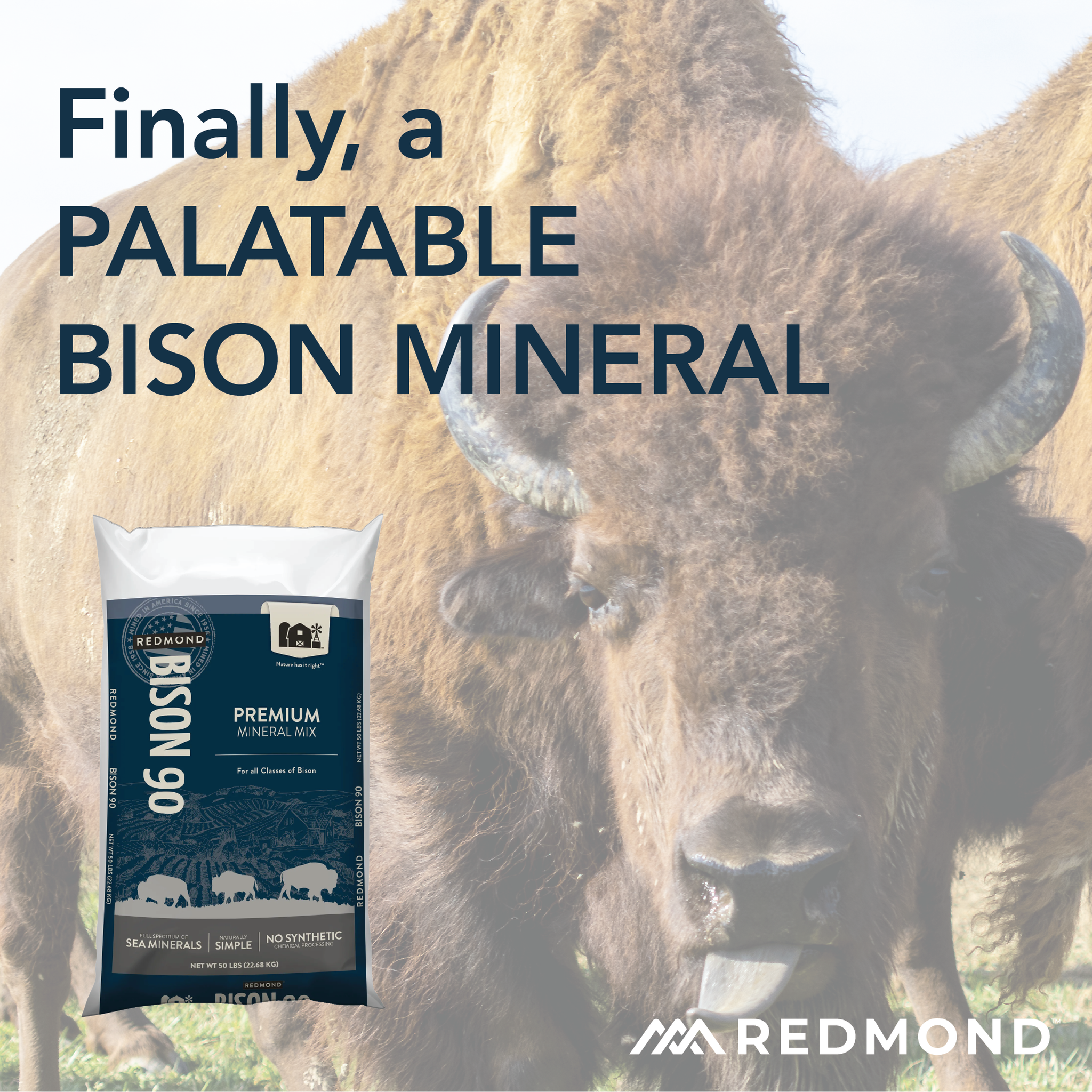 Bison herds can be a little pickier than other grazers when it comes to mineral supplements. Fortunately, Redmond Minerals has tailored our proven, all natural mineral mixes specifically for bison. Redmond’s higher salt to mineral ratio also makes our minerals much more palatable to your animals. When offered a choice between Redmond and other minerals, they happily choose Redmond every time! With natural sweeteners added to seal the deal, you can stop worrying about your bison getting the minerals they need.