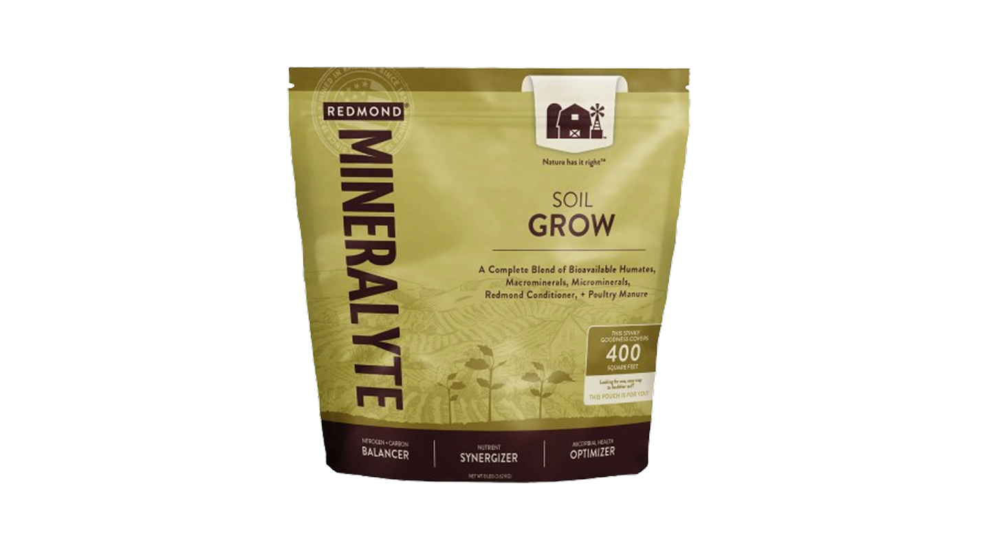 Implement regenerative agriculture practices like adding compost, manure, and other organic matter, using cover crops, and rotating to help keep your soil working. Focus on the natural sources of soil food found in Redmond Mineralyte to sustainably build healthier soil.