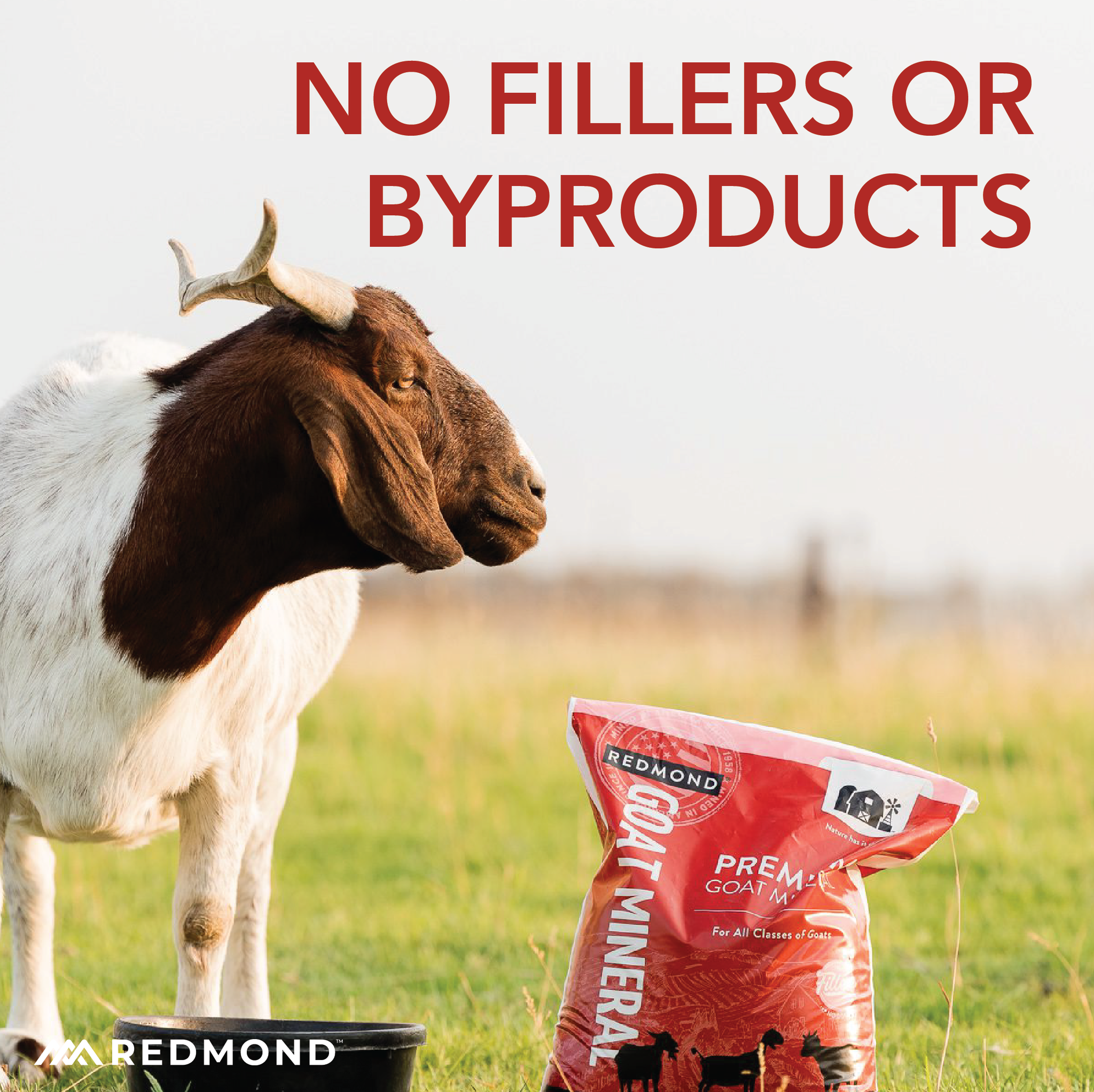 Redmond’s Goat Mineral Mix and licks contain a complete balance of 60+ essential natural minerals, and you will not have to coerce stubborn animals to eat it. Animals crave our delicious mineral mixes so you can rest assured that your goats are getting the nutrition you are offering them.
