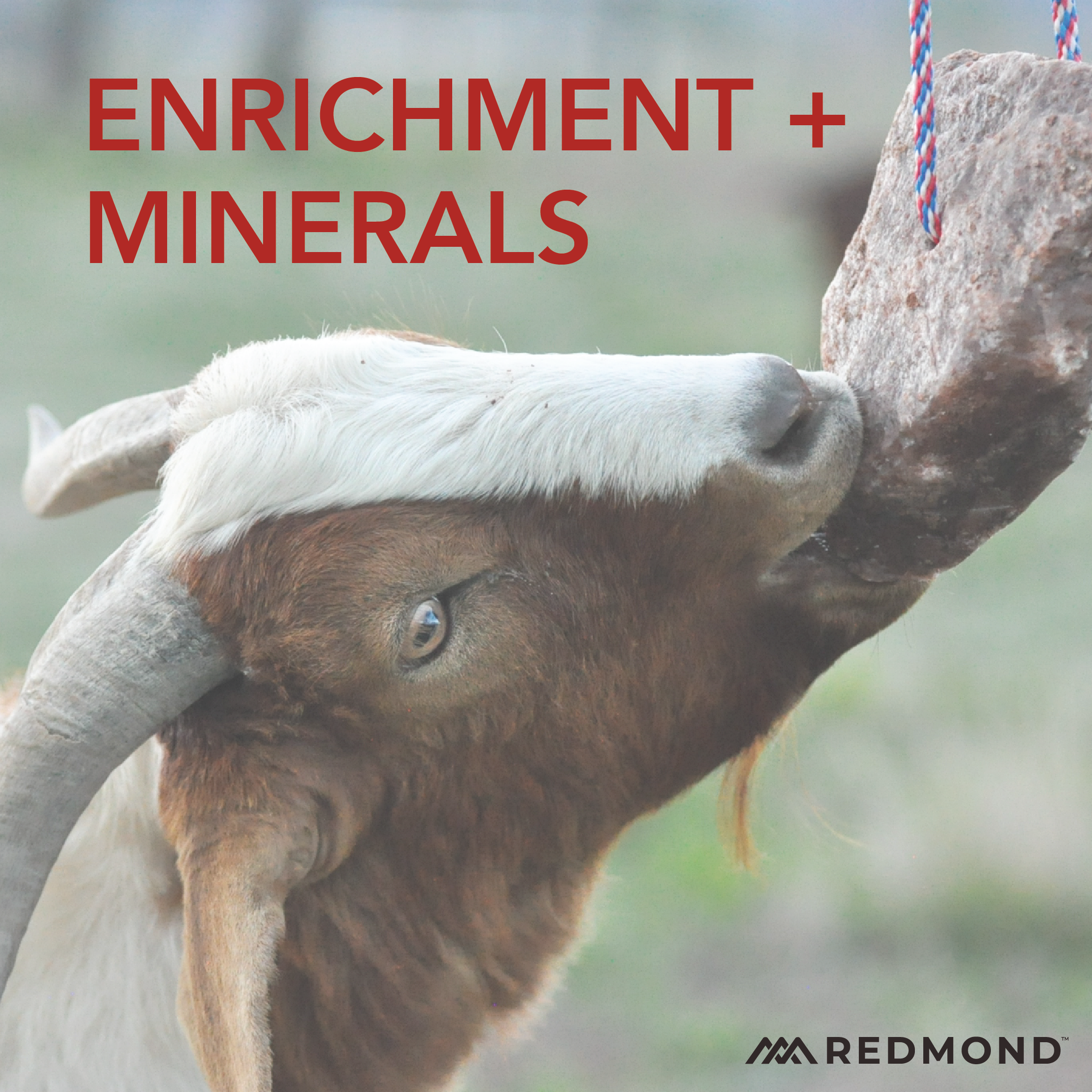 Redmond’s Goat Mineral Rock on a Rope and licks contain a complete balance of 60+ essential natural minerals, and you will not have to coerce stubborn animals to eat it. Animals crave our delicious mineral mixes so you can rest assured that your goats are getting the nutrition you are offering them.